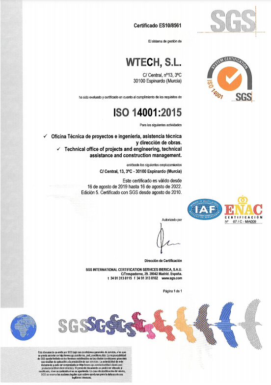 ISO 9001:2015 e ISO 14001:2015 basándose en los siguientes códigos de gestión, tal y como certifica la entidad SGS y se puede ver al final de la página: